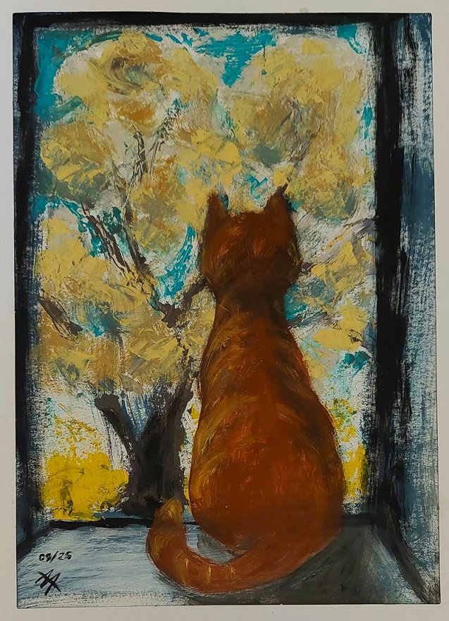 Die Katze auf dem Fensterbrett - 2025Öl auf Papier 24 x 30 cm